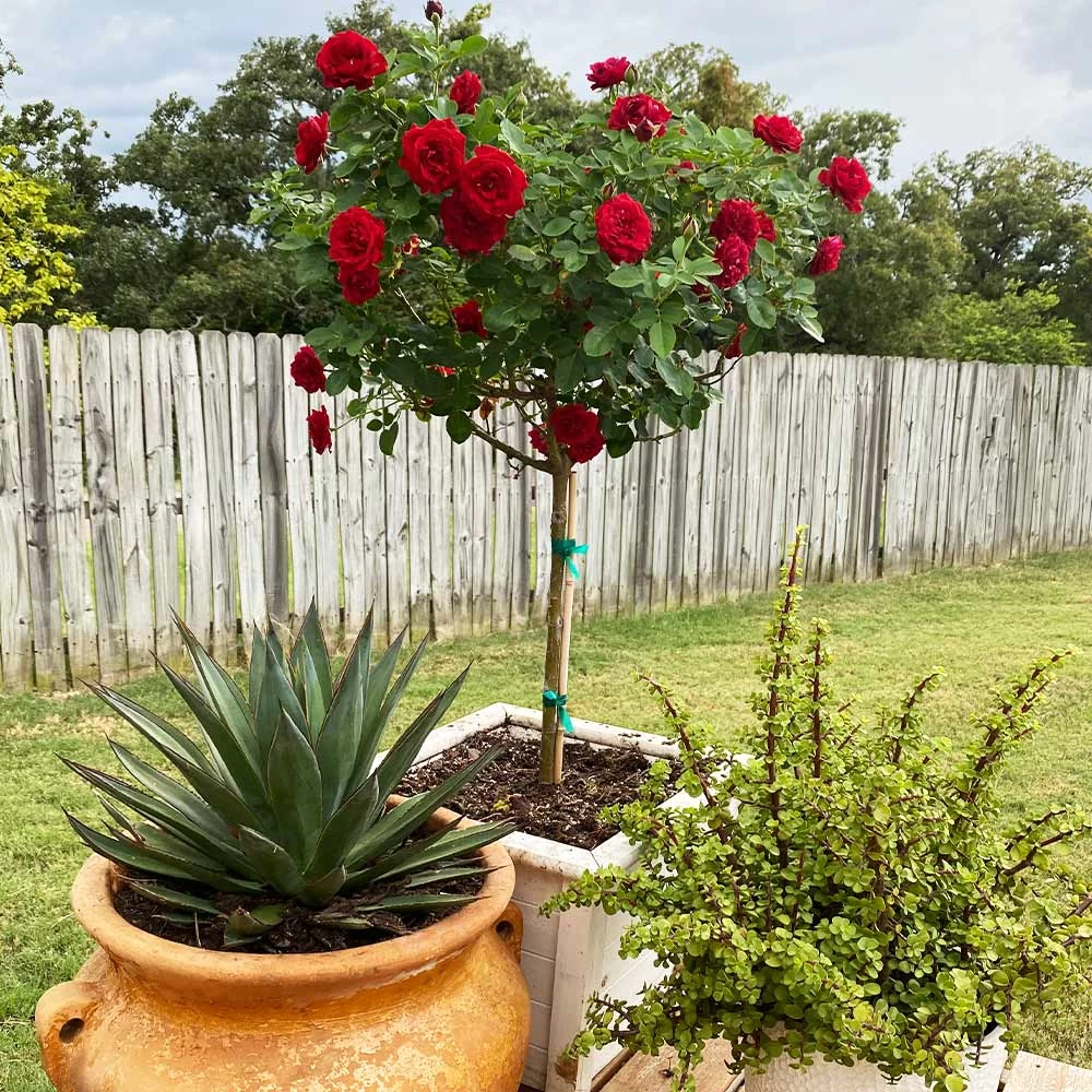 Dark red roses, aging to nearly black, set the Dancing in the Dark™ Rose Tree apart, giving you vibrant, velvety texture against a matte green backdrop. Plus, because the Dancing in the Dark™ Rose grows full and upright without much upkeep, you’ll get the look of a professional rose garden.